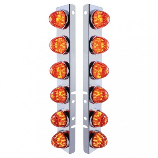 SS Front Air Cleaner Bracket- 12x Watermelon Lights; Peterbilt-Amber/Dark Amber