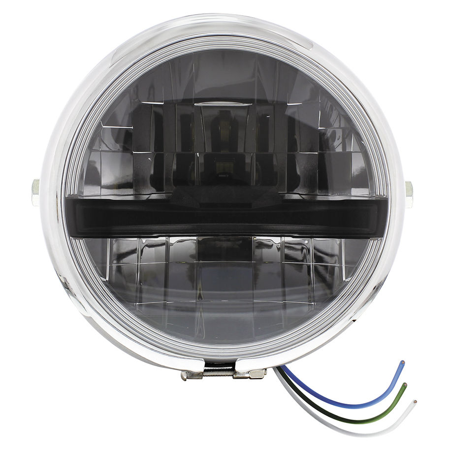Chrome 5-3/4" Motorcycle Headlight With Black Bar - Side Mount