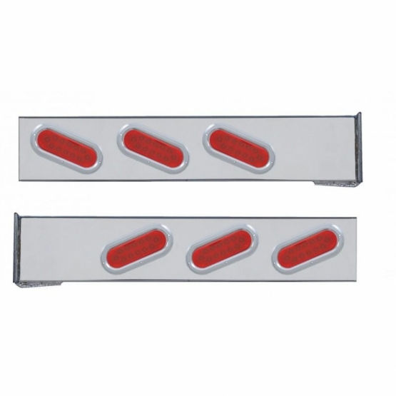 Chrome Flange Mount Rear Light Bar; 6x 12 LED Oval Lights/Bezels -Red (Pair)