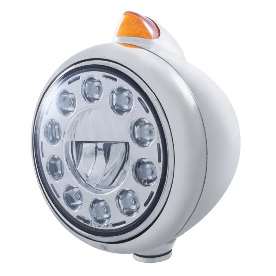 Chrome Guide 682-C Headlight 11 LED Bulb & Orig Style LED Signal -Amber Lens