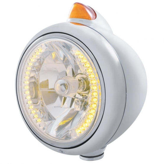 Chrome Guide 682-C Headlight H4; Amber LED & Orig Style LED Signal - Amber Lens