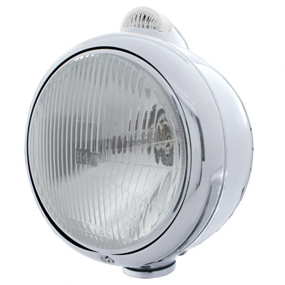 Chrome Guide 682-C Style Headlight H4 & LED Turn Signal - Clear Lens