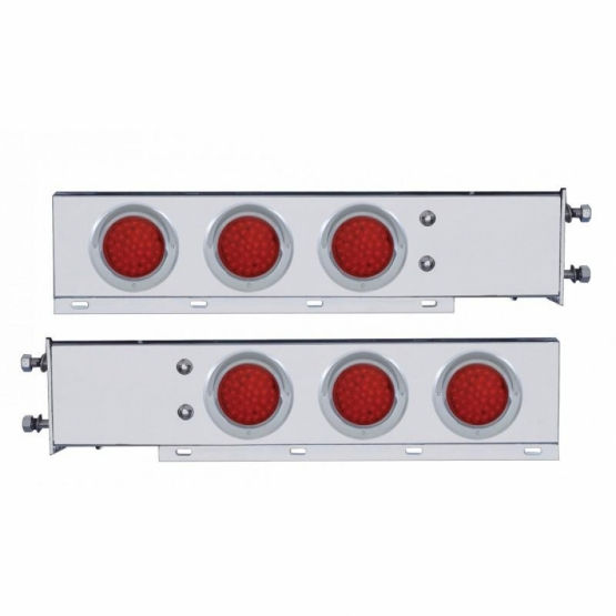 Chrome Spring Loaded Bar; 6X 36 Red LED 4" Lights & Visors - Red Lens (Pair)