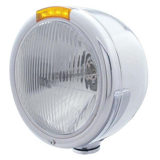 SS Classic Half Moon Headlight H4 Bulb & LED Turn Signal - Amber Lens