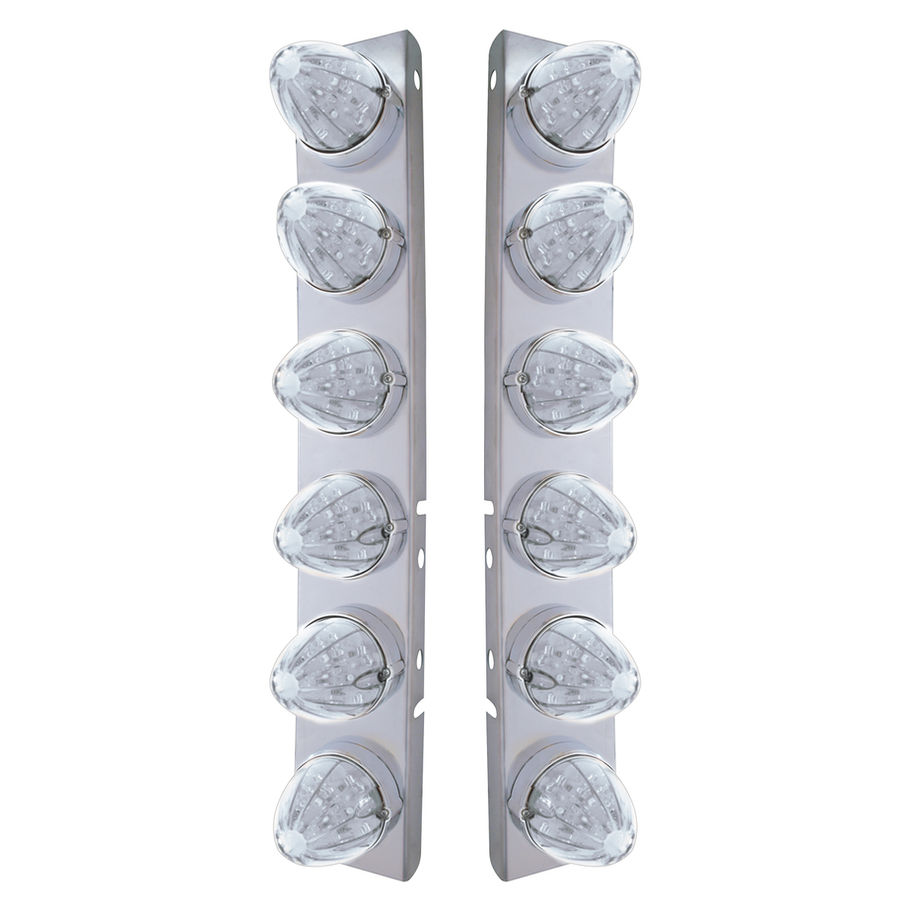 - Stainless steel Peterbilt front air cleaner bracket with 12X 19 LED lights.