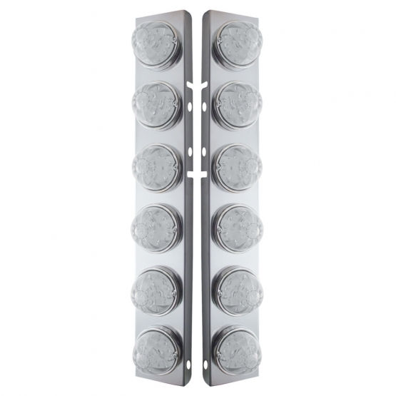 - Stainless steel Peterbilt front air cleaner bracket with 12X 17 LED lights.