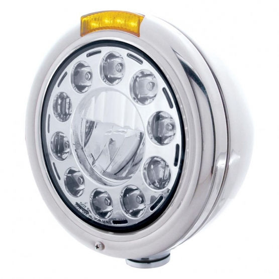 Stainless Classic Headlight 11 LED Bulb & Dual Mode LED Signal - Amber Lens